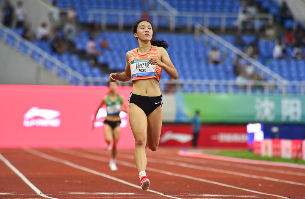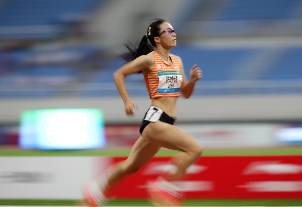 图为8月13日,陈妤颉在第一届全国青少年田径运动会女子200米预赛中的画面。新华社记者 李钢 摄