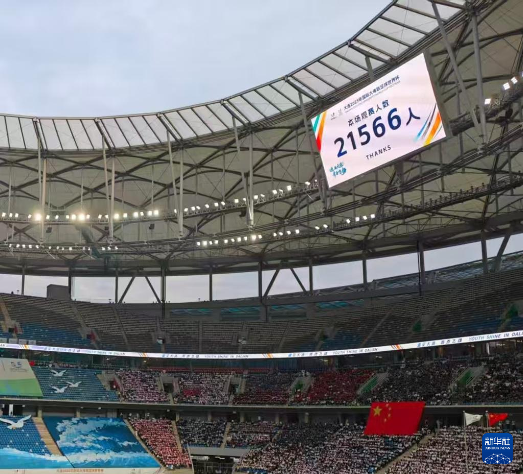 本场比赛观赛人数为21566人。冯蕾 摄(新华社发)